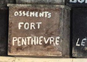 Nous commémorons cette année les 80 ans de la libération de la presqu’ile. Nous avons relaté la terrible histoire des martyrs du Fort de Penthièvre. Une boite en bois dans l’ossuaire du cimetière de Saint-Pierre indique « Ossement Fort Penthièvre », le Fort n’a pas livré tous ses secrets et de nombreuses sources indiquent qu’il reste des corps enterrés dans le fort…mais d’où viennent les ossements dans cette boite reliquaire ?