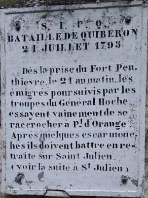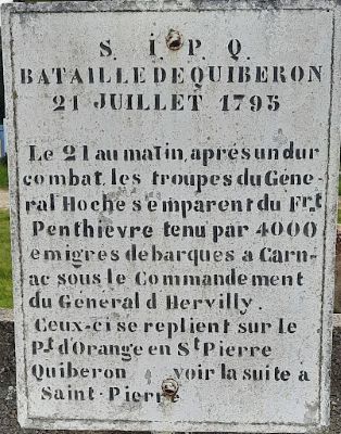 Le 6 juillet – Devant l’avancée des troupes républicaines de HOCHE, la population fuit vers la presqu’île de Quiberon, protégée par les Chouans de CADOUDAL. Les émigrés, eux, se sont réfugiés dans le Fort Penthièvre.