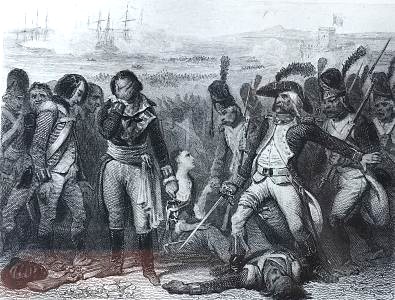 Auguste Fournier de Boisayrault d’Oyron [1], condamné à mort en 1795 comme émigré lors de « l’Affaire de Quiberon » doit être fusillé en haut de la plage au bout de l’anse du port d’Orange. Il fut « confié » à quatre exécuteurs. Arrivé sur le lieu de l’exécution les quatre « bleus » lui dirent en lui bandant les yeux :