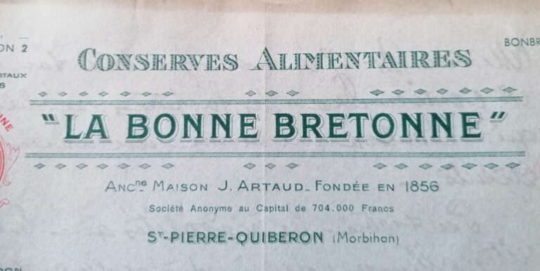 Ce terrain fut donc une carrière (brève d’octobre) jusqu’en 1960 environ, puis s’installa l’entreprise de mareyage « Roch-Marée », des établissements Jouhaud. Ce papier d’emballage ci-dessus indique bien leur activité « Sardines bretonnes toute l’année » et leur numéro de téléphone, le 15 à Saint-Pierre-Quiberon. Le passage officiel au nom de commune Saint-Pierre Quiberon date cette activité de 1962.