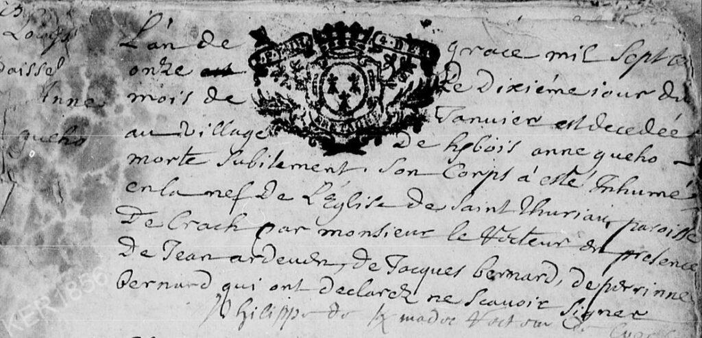 1711 – acte de sépulture, inhumation d’Anne GUÉHO